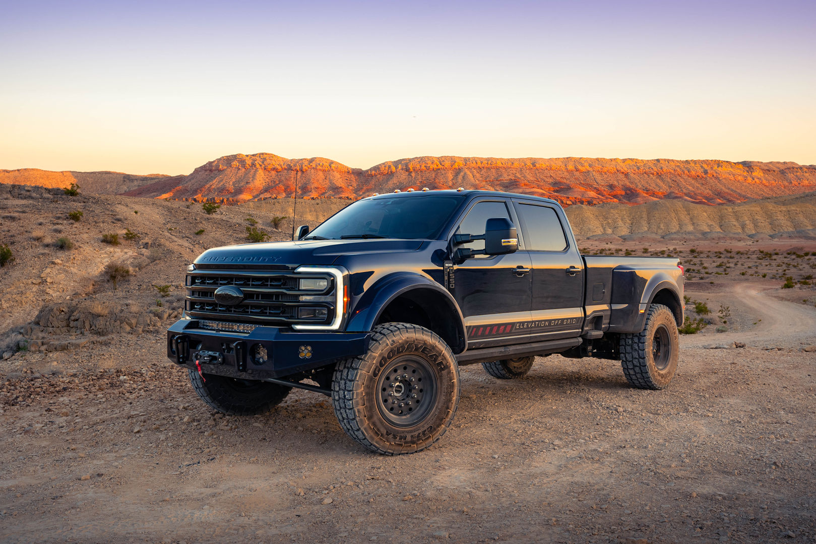 The incarnation of a study in strength, capability and sophistication. Immerse yourself in a one of a kind driving experience in the luxurious cab of the most capable truck on the planet. Black Edition is bold in appearance, magnificent in ride quality and backed by a payload rating nearly double that of an F450. Featuring Full Liquid Spring Smart suspension and the Elevation Off Grid spec Super Single Conversion, you are now behind the wheel of the most advanced F-550 in the world.